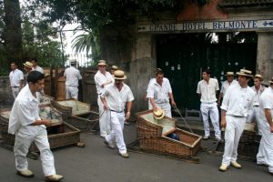 Para os turistas que sobem ao Monte pelo teleférico, a partir do centro histórico, uma das formas mais divertidas e emblemáticas de retornar à cidade é fazer a descida nos carros de cesto. O transporte, produzido artesanalmente em vime e madeira, é conduzido por dois carreiros que utilizam os próprios sapatos de solas grossas de borracha como freio.