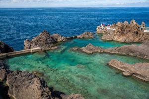 Além de belas praias, a Madeira possui algumas piscinas naturais e balneários que oferecem boa infraestrutura para os visitantes aproveitarem o dia. As piscinas naturais de Porto Moniz são as mais famosas e uma das principais atrações da costa norte da ilha. Elas ficam incrustadas na rocha vulcânica pertinho do mar e suas águas são renovadas a cada onda que invade as piscinas.