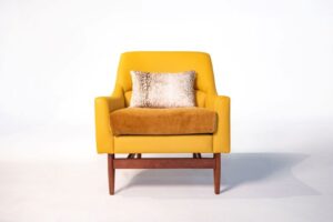 A Poltrona Relevo combina conforto, personalidade e sofisticação, com destaque para seu estofado confortável e detalhado por linhas esculturais em contraste com a base de madeira maciça.
