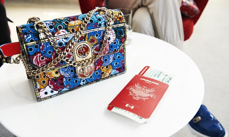Antes de voltar ao seu assento, espere um momento para despachar a bagagem no lounge, onde estão as mais novas criações de Christian Louboutin com uma exclusiva e divertida estampa Oh Xtian! Feita a partir de uma colagem de muitas inspirações, como revistas de moda, pôsteres retrô, propagandas, fotos vintage de flores e cenas de filmes.