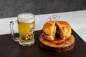 _Sanduíche de mortadela 300g + chop 300ml R$ 45,90
