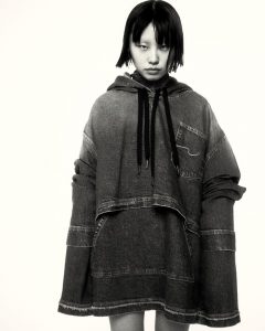 Em um jogo de camadas e proporções, com detalhes inesperados em cada peça, a cápsula eleva o jeans para o patamar fashionista e promete conquistar com overshirts, croppeds, moletons e casacos em formato de capas volumosas. Além disso, o sutiã esculpido, a camisa com laço e a saia lápis de chiffon inserem uma dose de feminilidade na collab e completam a dinâmica dos looks. A paleta de cores minimalista inclui o rosa blush exclusivo Nº21 com a icônica lavagem índigo da 7 For All Mankind.