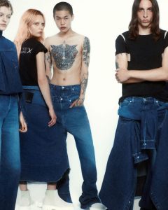A marca premium de jeans, 7 For All Mankind, lança a primeira coleção cápsula em parceria com a marca de luxo italiana, Nº21, liderada por Alessandro Dell’Acqua. Caracterizada por uma estética unissex, a linha oferece um novo olhar ao jeans ao celebrar a inclusão e a união, com silhuetas desconstruídas, mais fluidas e conscientes, e pegada sustentável.