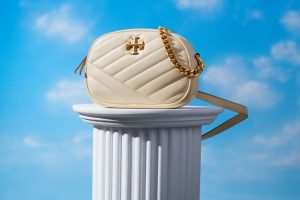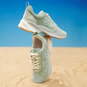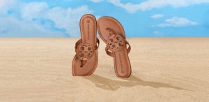 Estão incluídas duas reedições dos designs de McCardell: um flat que ela criou com Capezio em 1953, e uma bota listrada de seda e algodão.” – Tory Burch