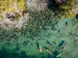 Conhecida como a Capital Mundial do Peixe-Boi, a região de Crystal River oferece várias opções para conhecer esses gigantes amigáveis. Acostumados com as águas quentes das nascentes locais, os mamíferos costumam lotar as nascentes de Citrus County de novembro a março, tornando possível ver dezenas de peixes-boi tanto acima quanto abaixo da superfície. Nestas nascentes, só é permitido o snorkeling, mas é um passeio inesquecível para os amantes da natureza.