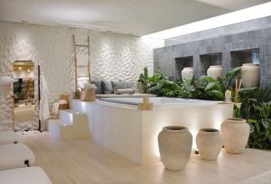 Remansos são porções de água que, no mar ou num rio, penetram em um recorte curvo da natureza e formam pequenas enseadas de calmaria. Espécies de oásis da vida real, baías que se separam do todo e onde predomina a quietude. É a partir dessa ideia que nasce o ambiente assinado pela arquiteta Mariana Mendonça na CASACOR Goiás 2023. Em sua oitava participação na mostra, a profissional apresenta o Remanso, espaço de 98m² que convida a uma experiência de relaxamento, na qual água, pedra, fogo, fibras naturais, barro, cerâmica e outros elementos naturais dialogam, se misturam e se confundem em meio a uma atmosfera na qual impera o bem-estar.