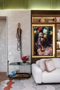 - Sustentabilidade: Considere a origem e os materiais das peças. Obras feitas com materiais sustentáveis ou reciclados podem adicionar uma camada de significado ao espaço. “Ainda mais porque a sustentabilidade é um tema cada vez mais importante dentro do design de interiores,” observa.