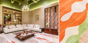 No coração do Acalanto e Encontros, o tapete do ambiente, assinado pelo escritório BMA Studio, é outra peça central que sintetiza o tema da CASACOR. Desenvolvido com a ajuda de Inteligência Artificial e utilizando retalhos de tapetes antigos, ele representa a conexão entre passado, presente e futuro, integrando música, tecnologia e sustentabilidade, pois ele é uma canção de ninar indígena, congelada no tempo e na arte. “A peça é parte de uma ancestralidade futurística, onde cada onda sonora foi isolada e depois montada em uma composição para o desenho do tapete, a partir disso nós utilizamos de restos de tapeçaria para criar algo novo”, completa.