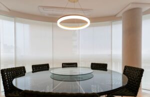 “A mesma ideia de continuidade, através da combinação, pode ser percebida com o uso da madeira, que se fez presente em diversos espaços – como no painel da TV com mais evidência, mas também replicada nas colunas”, conclui.
