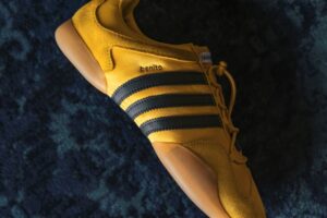 Com o design inspirado no icônico adidas Taekwondo, originalmente criado para prática de artes marciais, o adidas Ballerina traz uma fusão estética, transitando entre o moderno e o elegante. A silhueta tem sobreposições em camurça premium na ponta e no calcanhar, dando um formato diferenciado. Além disso, o tênis conta com uma marca bordada “Benito”, o nome de registro do artista, perto das tradicionais Três Listras.