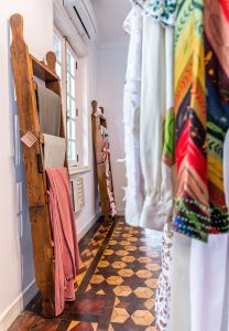 Outros ítens são ressignificados e contam novas histórias a partir do upcycling, um dos três pilares do AdStudio, junto com o garimpo e a restauração. Na loja, carregadores de tijolos de 1900 se tornaram lindos expositores de tecidos, um engradado de bebida é usado como um revisteiro decorado, e cadeirinhas de crianças de 1960 são usadas como suporte para acessórios em cima de uma mesa e como prateleiras presas na parede. Manequins, bancos, caixas, poltronas, e outras tantas peças compõem os ambientes.