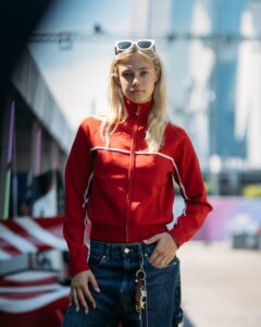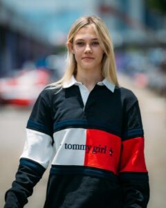 A piloto da F1 ACADEMY® e embaixadora da Tommy Hilfiger, Alba Larsen, usou Tommy Jeans durante o Grande Prêmio de Fórmula 1® em Marina Bay, Singapura, realizado entre os dias 3 e 5 de outubro de 2025.