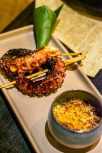 Comandada pelo chef Lucas Zanette, a casa é diferente de qualquer outro empreendimento de Trancoso e tem como pilares a valorização do natural, a gastronomia molecular e a fusion cuisine – sendo um dos únicos locais do Brasil com um menu voltado a essas técnicas. O cardápio é variado, com alimentos frescos e crus por meio de pratos que utilizam diversas ovas impressionantes como de coentro, shoyu, manga, gengibre, wasabi e muitos outros. Apesar disso, o menu da casa também tem uma seleção de carnes – como sashimi e niguiri de Wagyu e Flat Iron na churrasqueira japonesa – e pratos da cozinha contemporânea, atendendo todos os gostos de seus visitantes.