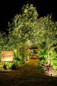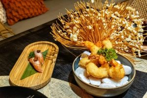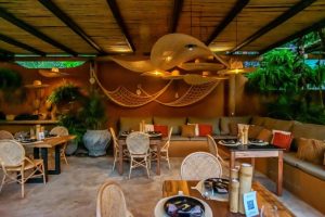 Com assinatura da conceituada arquiteta Sara Romano Afonso, a decoração do espaço atua como uma forma de conexão com a culinária apresentada. Suas luminárias são de fibras naturais, como rattan e palha, 100% feitas a mão com artesãos da Indonésia. Além das peças provenientes do país asiático, há produções de artistas locais. Localizado em um grande jardim arbóreo no Quadrado e com uma linda cascata em seu espaço, o ambiente – diferente de tudo que é encontrado na cidade – proporciona uma imersão total com a natureza, ideal para quem busca privacidade e reconexão.