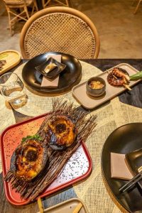 Comandada pelo chef Lucas Zanette, a casa é diferente de qualquer outro empreendimento de Trancoso e tem como pilares a valorização do natural, a gastronomia molecular e a fusion cuisine – sendo um dos únicos locais do Brasil com um menu voltado a essas técnicas. O cardápio é variado, com alimentos frescos e crus por meio de pratos que utilizam diversas ovas impressionantes como de coentro, shoyu, manga, gengibre, wasabi e muitos outros. Apesar disso, o menu da casa também tem uma seleção de carnes – como sashimi e niguiri de Wagyu e Flat Iron na churrasqueira japonesa – e pratos da cozinha contemporânea, atendendo todos os gostos de seus visitantes.