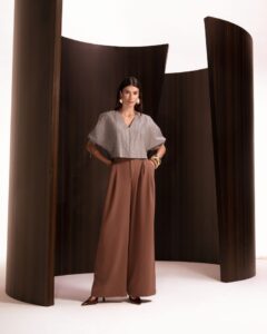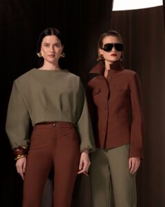 Nas modelagens, as novidades aparecem nas peças mutáveis, além da clássica alfaiataria que retorna no super cotton. Nesta base, a marca trabalha seus designs de forma contemporânea, trazendo o conceito de casual luxury para os itens essenciais da estação. Outro destaque é o crepe glam, tecido permanente na coleção, que retorna com bordados inspirados em ornamentos da exposição Louvre Couture, explorando tons como como caramelo salgado, cereja, macadâmia e off white.