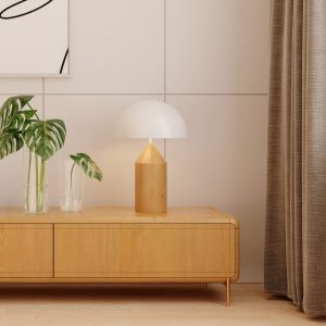 Abajur Balzac – estrutura em madeira para realçar a sensação de aconchego e a cúpula em acrílico oferece uma iluminação suave e difusa, criando uma atmosfera acolhedora. A combinação perfeita entre a madeira e acrílico confere um estilo único a este abajur.