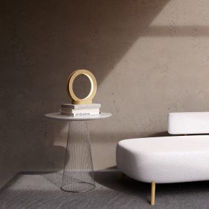 Mesa de Apoio Biarritz – tampo em pedra natural para proporcionar um toque sofisticado e luxuoso, e base em inox para um elemento moderno, leve e elegante