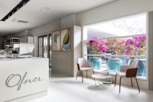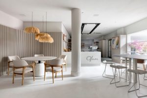 Com área total de 170 m² para uso comercial e voltado para apreciação do menu Ofner, a proposta de sua arquitetura de interiores revela-se como uma fenda no tempo que trafega entre o passado e o futuro. “Muito mais do que uma cafeteria, o foco do nosso projeto é ser o ponto de encontro das memórias vividas e permeadas com as aspirações de futuro. Através de cada elemento que trouxemos, a inspiração foi motivar nosso visitante a tirar do papel os desejos mais profundos para se tornarem presentes nessa vivência”, explica Flavia.