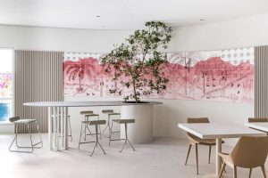 A arquitetura foi pensada a partir do cenário modernista do icônico prédio do Conjunto Nacional, palco da 35ª edição da CASACOR São Paulo. Com isso, o espaço assinado pelo Studio HA promove a continuidade e a fluidez no design orgânico construído sob a rigidez do concreto que recebe áreas repletas de memórias afetivas. Composto por hall de entrada, mercearia, café, salão, cozinha e lounge externo, o espaço emana a atmosfera acolhedora de uma casa. Para tanto, a criação de pequenos lounges íntimos e arrojados com mobiliário exclusivo – entre mesas, sofás e poltronas – convidam o visitante a ser abraçado e envolvido pela experiência do café.
