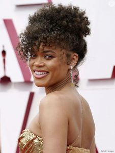No domingo (25), a indicada para Melhor Atriz em Papel Principal por “Estados Unidos vs. Billie Holiday”, Andra Day, desfilou com os diamantes da Tiffany&Co. no 93º Oscar em Los Angeles, na Califórnia