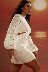 Com uma seleção de tecidos nobres, a seda, carro chefe da marca, aparece em criações fluidas e elegantes, proporcionando a leveza essencial para a estação mais quente do ano. Repaginado, o couro é apresentando com frescor, através de recortes e comprimento mini. Já o brilho se manifesta em diversas formas, assegurando o glamour característico do período.