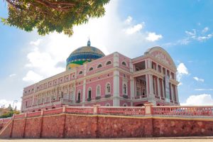 1 – Teatro Amazonas: O Teatro Amazonas é um dos marcos mais famosos de Manaus, conhecido por sua arquitetura impressionante e óperas de classe mundial. Com sua cúpula azul e amarela, é um símbolo da era da borracha que enriqueceu a região. O Teatro é um dos locais visitados neste Tour por Manaus.