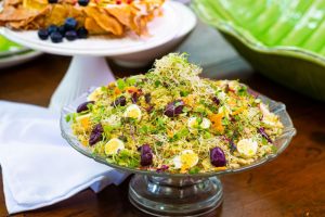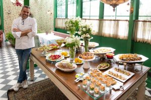 Entre as receitas elaboradas pelo chef Cadu Parolari, delícias da culinária francesa e internacional como Terrine de pato em massa folhada; Salmão gravilax; Crepe de palmito; Timbale de bacalhau e grão de bico; Pernil de vitelo assado; além de saladas, queijos, defumados, pães e sanduíches, como croque monsieur – todas dispostas em uma mesa magnificamente decorada.