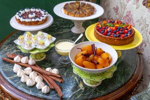Na ala de sobremesas, mais tentações irresistíveis como: Torta de ganache e caramelo salgado; Suflê de queijo e calda de frutas vermelhas; Mini Pavlovas; Croissants de Nutella e Clafoutis de mirtilo com massa de amêndoas. Para quem prefere doces à base de frutas, a dica é a Pera ao vinho com açafrão e especiarias servidas com zabaione. Para beber, estão inclusos: suco de tangerina com calda de especiarias e água aromatizada, além de opções de cafés.