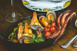 Na mesa, entre as criações do chef Cadu Parolari estão: Camembert enveloppée, em massa filo, geleia de damascos e brioche tostado (R$ 68), de entrada: Casserole de frutos do mar com fettucine artesanal envolto com molho bisque, vôngoles e raspas de limão siciliano (R$ 289, para duas pessoas/ foto) de prato principal e Esfera de chocolate meio amargo, recheada de cheesecake com frutas vermelhas, ganache de chocolate, crumble de cacau e flambada na vodca (R$ 52), de sobremesa.]