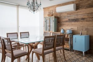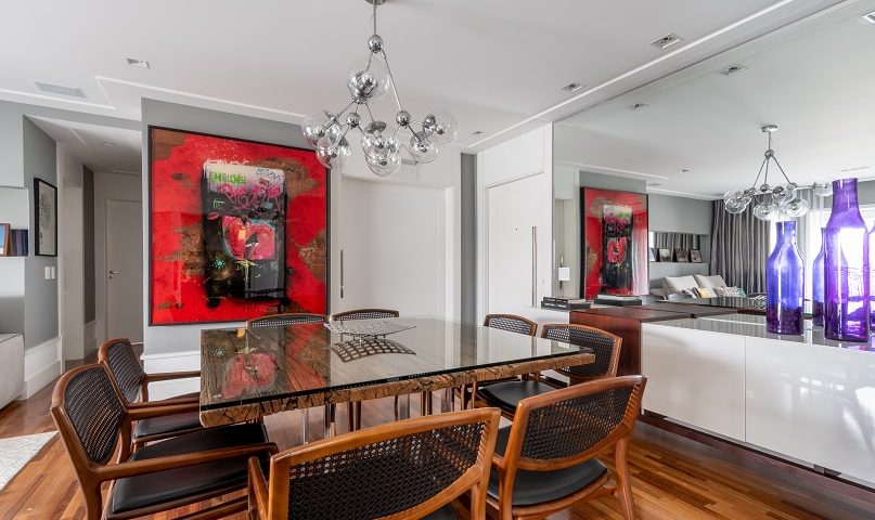 Podemos encontrar opções feitas de madeira, vidro, metal, entre outras versões, ostentando um estilo retrô, moderno ou rústico. Porém, é preciso cautela ao eleger o material que melhor combinará com o perfil do projeto. “Não há regras e misturar estilos também resulta numa decoração linda e cheia de personalidade”, afirma Isabella Nalon. “Mas, em geral, se você tem um ambiente rústico, é possível trabalhar com um aparador de madeira. Já em uma composição de atmosfera clássica, com toque clean, podemos adotar um móvel espelhado que, ao mesmo tempo, combinado com estilos clássicos ou modernos. Já quem busca um visual retrô pode lançar mão de uma peça com laca colorida. Ou seja, são infinitas possibilidades”, continua a arquiteta.
