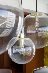 Um dos grandes destaques é a luminária com design de Ingo Maurer no home office. Na sala de jantar, o escritório optou por pendentes que destacam a vista privilegiada do apartamento.