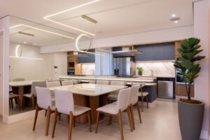 Foram três meses de projeto e seis de obra para chegar a esse resultado: um apartamento funcional, fluido e cheio de personalidade, onde cada escolha de cor, revestimento e mobiliário carrega a essência dos moradores.