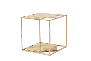 Breton — Marca traz como destaque da pedra natural, a mesa lateral Diamantina assinada por Luisa Moysés para o Estúdio Breton, feita em aço inox polido e tampo em mármore. Dimensão: L 0.500 P 0.500 H 0.500