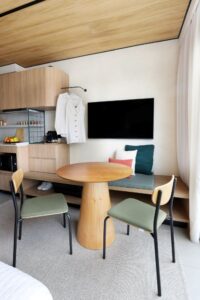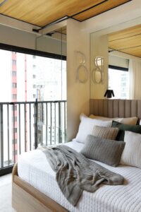 Com soluções inteligentes e um olhar atento aos detalhes, o pequeno espaço foi transformado em um refúgio urbano sofisticado, capaz de proporcionar uma experiência inesquecível para seus hóspedes.