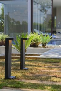 Para caminhos nos jardins e quintais, o ideal é sempre trabalhar com produtos específicos para áreas externas, como é o caso de postes, balizadores e embutidos de solo. É importante que a peça escolhida tenha um Índice de Proteção (IP) igual ou superior a IP65. Além de contribuir para a melhor funcionalidade do produto, também garante que a iluminação seja resistente a jatos d’água e de poeira.