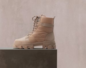 As botas com solado tratorado são as peças chaves do capítulo. A fim de atender todos os estilos e ocasiões, é possível encontrar modelos atemporais como: botas de canos longos, conhecidos como Over the knee, coturnos e as queridinhas Tire Boots, abordando assim diversas possibilidades para a mulher Arezzo. Os tons neutros, como preto e bege, predominam na coleção, mas detalhes em tons vibrantes de rosa, laranja e verde mostram seu diferencial e irreverência.