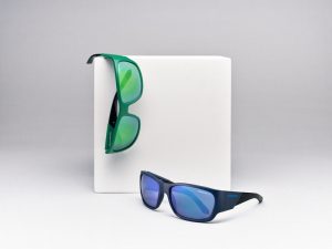 duas cores, super amplas e arrojadas, combinam com as novas lentes bio-based de duas cores, além dos logotipos coloridos nas combinações azul e alaranjado, preto e amarelo ou cinza escuro e roxo, pois o sustentável não precisa ser entediante, e o preto total está sempre na moda.