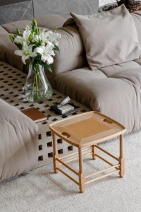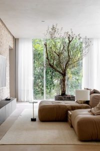 Em um ambiente de 130m², que abrange um living com cozinha integrada, varanda, lavabo e lavanderia, Mariana traz uma reflexão sobre a permanência do que transcende o tempo em um espaço repleto de elementos que contam histórias e honram os laços que a moldaram até O AGORA. As oliveiras centenárias ganham destaque no living e simbolizam o crescimento contínuo e gradual de décadas até alcançar a robustez, capazes de renascer das raízes com mais força. As árvores servem como uma homenagem à sua mãe, que em um tratamento contra um câncer renunciou a uma parte do seu corpo para preservar a vida, demonstrando por tantas vezes força e resiliência. “Origem” é um testemunho de seu amor e sua admiração.