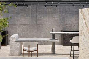 Segundo Pedro, a proposta foi ir além da simples exposição de produtos. “Nossa ideia foi criar um ambiente que convidasse o visitante a entrar, tocar e sentir as pedras. Pensamos em cada detalhe para transformar o stand em uma experiência completa, valorizando a força e a beleza natural dos materiais”, destaca o arquiteto.