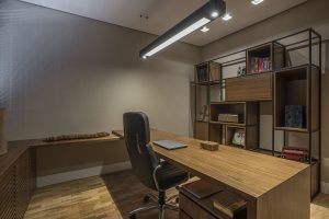 Entre as principais mudanças está a do escritório. “Ele foi totalmente remodelado com móveis funcionais, estilosos e feitos sob medida. Como trabalho na maior parte do tempo no modelo home office, isso teve um impacto bem positivo no meu bem-estar. Confesso que minha produtividade até aumentou”, comemora Cláudio.