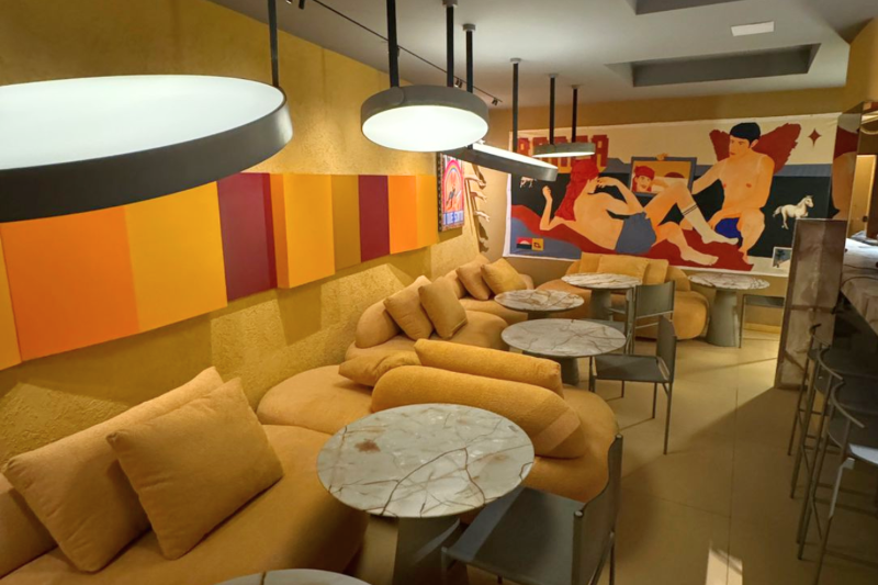 “A cor trouxe uma atmosfera acolhedora, enquanto as obras de arte e o design do mobiliário reforçam a ideia de um lugar que inspira e conecta. Cada elemento foi pensado para dialogar com o conceito do bar e com o contexto histórico do Recife Antigo, criando uma experiência única para os visitantes. Fugimos da paleta de cores tradicional com o objetivo de proporcionar um espaço confortável e convidativo”, explica.