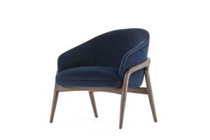 Sua concha foi inspirada nos plissados das esculturas femininas da Grécia antiga e é pousada em uma leve estrutura de madeira torneada.]