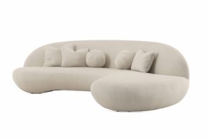 As linhas do sofá seguem as leis áureas de proporção ao mesmo tempo que criam a leveza e grandiosidade da peça.