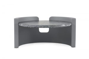 A mesa de fibra de vidro com a possibilidade de escolher várias opções de pedras naturais para o tampo trazendo a elegância e sofisticação para a peça.
