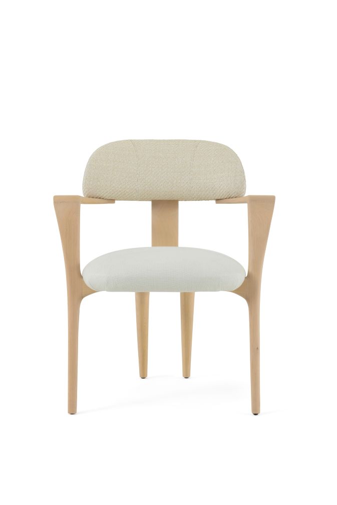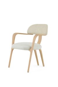 Confeccionada em madeira italiana (faggio), com encosto e assento estofados, a Cole oferece mais do que conforto: entrega ergonomia cognitiva e física — o toque, o encaixe e o gesto são guiados por um design que instiga os sentidos.