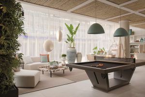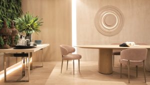 Para Juliana e Melissa, “é importante estar bem onde vivemos. Sentimos cada vez mais a necessidade de incluir diferentes funções dentro de um mesmo espaço, mas sem perder o aconchego e a beleza”. Para esta edição da Mostra Artefacto, a dupla, que uniu as expertises para a elaboração de projetos residenciais e comerciais há mais de cinco anos, voltou seu olhar para shapes orgânicos e cores naturais na elaboração do loft de 81 metros quadrados. O conceito expressa o frescor na escolha das peças, caso do módulo Renzo, em formato de “L”, com design clean e sem braços. Os sentidos também são ativados com a presença de três fontes – que inserem o elemento água na proposta, potencializando a sensação de conforto e de contato com a natureza. Também neste mix conceitual entre morar/receber, a mesa La La Land chama a atenção: ora sóbria, para ser usada na sala de jantar; ora descontraída, para divertidas partidas de bilhar ou ping-pong. “Para nós, uma palavra que define a Artefacto é confiança. Seja na qualidade, no atendimento e no pós-venda que inclui a resolução de qualquer eventualidade. Isso é importante tanto para o profissional quanto para o cliente final. São pilares que sustentam nossos projetos”, afirmam.