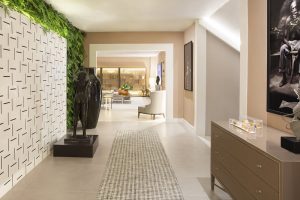 Uma boiserie estilo francesinha, um piso de mármore italiano, muitas imagens de praias brasileiras. É para suprir a saudade de viajar que a arquiteta projetou os 76 metros quadrados sob medida para a Mostra Artefacto. “A estratégia da marca de lançar seus produtos por meio de mostras foi uma inovação na nossa área e acabou virando um evento muito importante e esperado pelos profissionais, clientes e até estudantes de design e arquitetura de interiores”, ressalta. A sua participação desta vez tem sabor ainda melhor: Ana esteve presente em todas as edições do evento. “O DNA Natural proposto na temática foi traduzido por meio do charme, suavidade, conforto e sofisticação, trazendo o verde como detalhe de cor nos adornos, no tapete, e nas plantinhas naturais sempre presentes para humanizar os meus projetos”. Aliado aos painéis franceses está o revestimento de papel de palha natural – mix que não deixa dúvidas de que a elegância também é feita de contrastes. Amor à primeira vista, a moldura Callet conquistou Jucá. Também fazem bonito no cenário o módulo Discovery e a mesa de jantar Halston. “Tudo tem seu lado bom. Ver a casa ganhar mais importância na vida das pessoas é um grande legado de tudo isso que estamos ainda passando”. Para a profissional, “a Artefacto cada vez mais se firma no mercado como sinônimo de qualidade diferenciada, tanto nos produtos, quanto no atendimento e pós-venda, sempre com respeito ao consumidor, pontualidade e logística impecável nas entregas”.