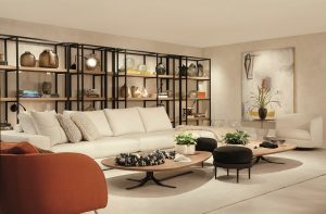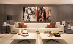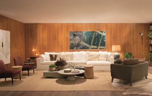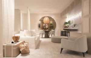 Saber viver é uma arte e, neste contexto, Sérgio converteu-se numa espécie de escultor com olhar apurado para a concepção de projetos de interiores – caso deste ambiente de 60 metros quadrados feito sob medida para a Mostra Artefacto dentro de uma proposta dolce far niente. “Quis trazer o prazer do uso e do bem estar num ambiente feliz, descontraído e relax – um gazebo numa residência de praia, confortável e com estilo. Tipo uma casa na Costa Amalfitana, Capri e redondezas”, exemplifica. Neste gazebo, o criativo revestiu paredes + teto com wallpaper sublinhado a fim de atingir um efeito óptico irreverente/surpreendente, realçando peças como o biombo Hive e o sofá Orfei – num raro balanço entre sofisticado/simples. Referência no circuito carioca do high décor, o profissional é um “apaixonado pelos ossos do ofício”, e reuniu a busca pelo bem-estar, que aplica em todos os seus trabalhos, às transformações sentidas recentemente no mercado da arquitetura em tempos de isolamento social: “Saber viver e conviver com a sua casa – com a sua família – é o melhor que temos em nossa vida”. Veterano, ele atesta: “Frequento a Artefacto há 24 anos: um convívio sadio e feliz, permeado por competência, compromisso e lealdade. Uma marca que se atualiza e se reinventa a cada coleção, nos proporcionando satisfação e realização profissional em nossos resultados com os clientes – desde a compra até o pós-venda, sempre comprometido com a qualidade. Isso tudo confere ao profissional plena tranquilidade na especificação do mobiliário”.
