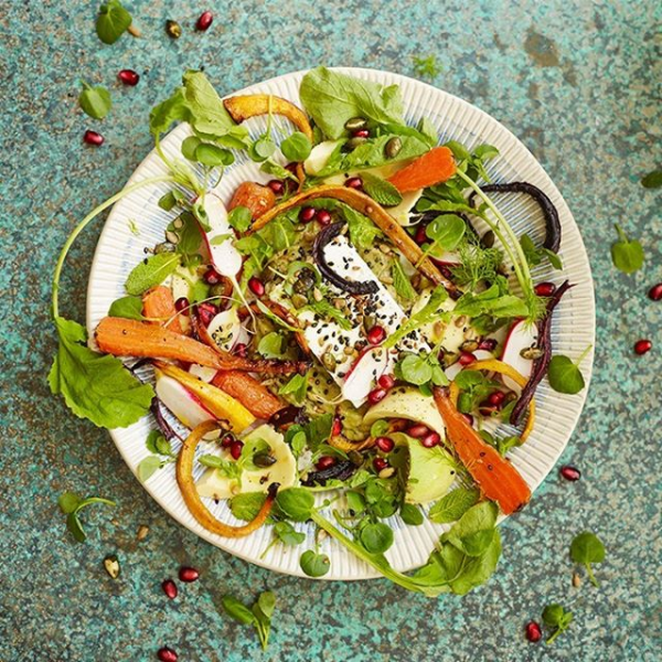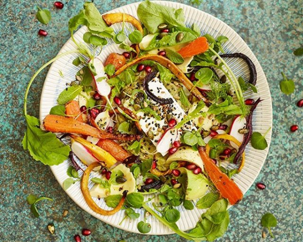 Para acompanhar os principais, as opções são a Super Food Clássica (Grãos & sementes com beterraba, erva-doce, cottage, abacate grelhado, harissa & brócolis), Batatinhas Assadas, Polenta rústica com alecrim e parmesão, Legumes Grelhados, Spaghetti Alla Norma (com berinjela, pimenta dedo-de-moça e manjericão em um rico molho de tomate), Penne Pomodoro (molho de tomate com alho, manjericão e pangrattato), Casarecce Alfredo (manteiga, parmesão e creme) e Funny Cips.
